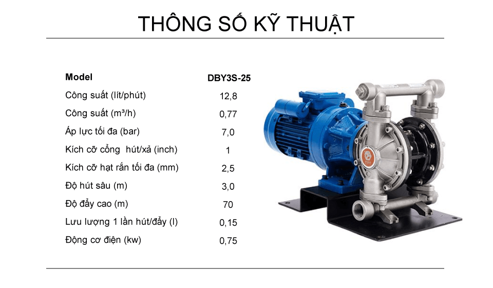 Bơm Màng Điện 1 - Thân Inox - 12,8 LPM DBY3S-25-I