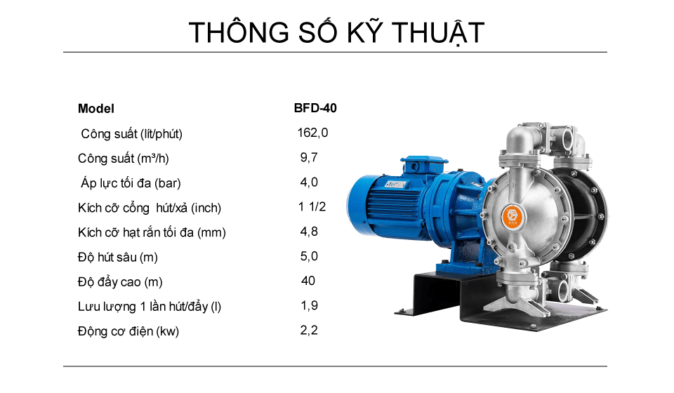 Bơm Màng Điện 1-1/2 - Thân Inox - 162 LPM BFD-40-I