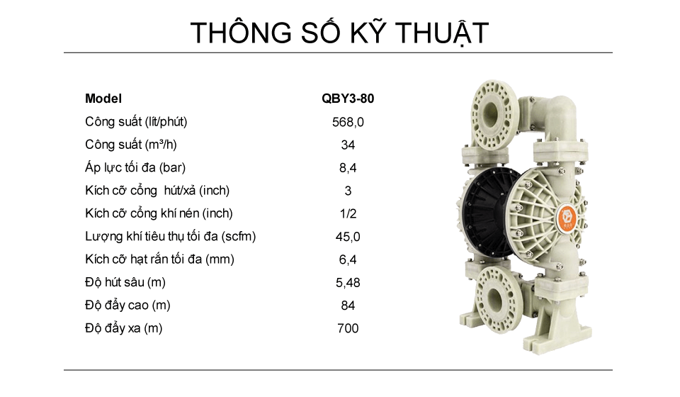 Bơm Màng Khí Nén 3 - Thân TEFLON - 568 LPM QBY3-80-T