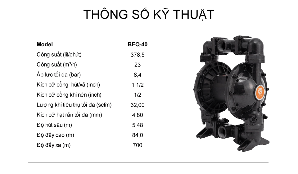 Bơm Màng Khí Nén 1-1/2 - Thân Gang - 378,5 LPM BFQ-40-G