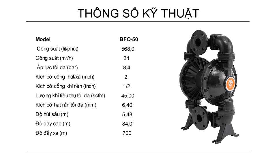 Bơm Màng Khí Nén 2 - Thân Gang - 568 LPM BFQ-50-G