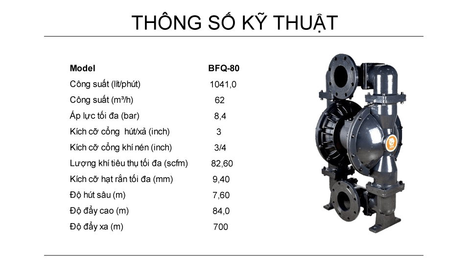 Bơm Màng Khí Nén 3 - Thân Gang - 1041 LPM BFQ-80