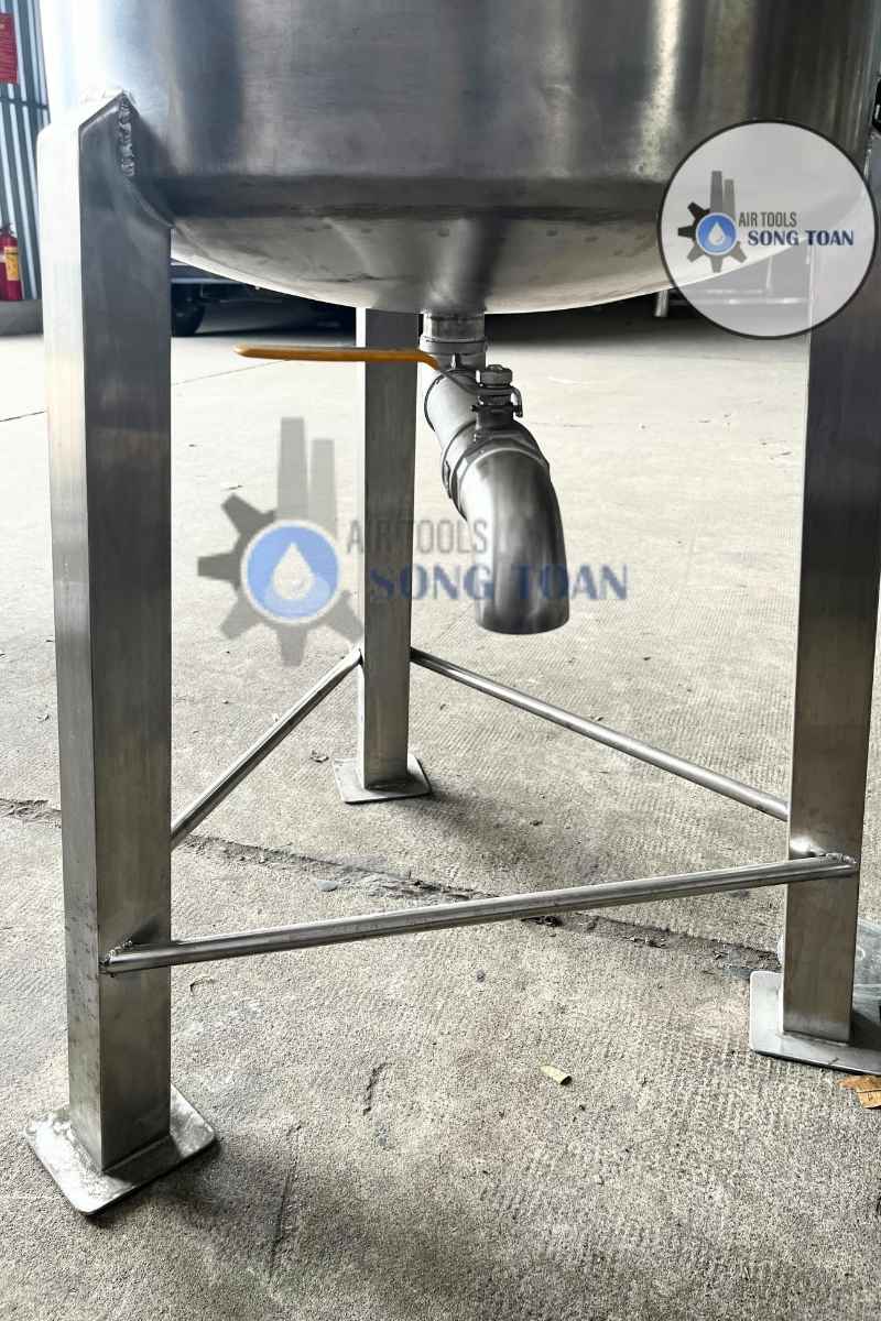 - Tiết kiệm không gian - dễ lắp đặt: Tổng chiều cao 1,65 mét phù hợp với đa số nhà xưởng quy mô vừa và nhỏ. Van xả được bố trí ở độ cao hợp lý, thuận tiện thao tác lấy sản phẩm, giảm thời gian chờ và tăng hiệu suất làm việc.