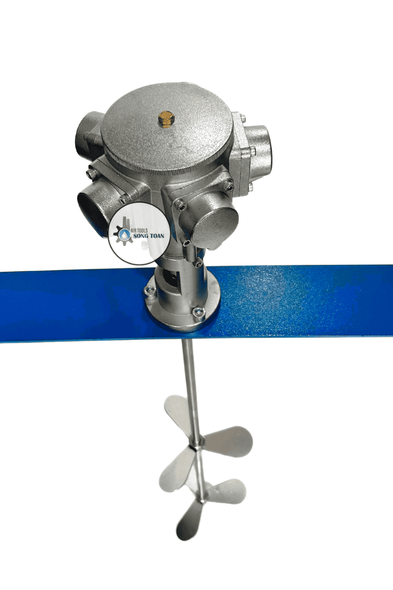 Motor hơi khí nén 5 piston: công suất 0,75 HP Máy được trang bị motor khí nén 5 piston mạnh mẽ, cung cấp lực khuấy ổn định và hiệu quả. Sử dụng động cơ khí nén không chỉ tăng cường độ an toàn khi làm việc trong môi trường có nguy cơ cháy nổ mà còn giúp tiết kiệm điện năng.