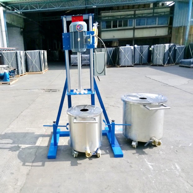 Máy cơ động có thể nâng hạ lên xuống thuận tiện cho việc khuấy được nhiều dung tích của sơn.