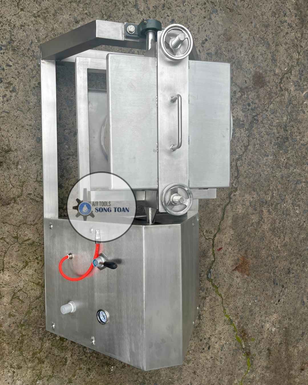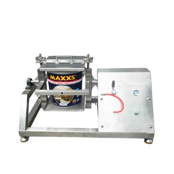 - Đặt lon sơn vào bộ kẹp đúng vị trí, siết chặt tay kẹp
