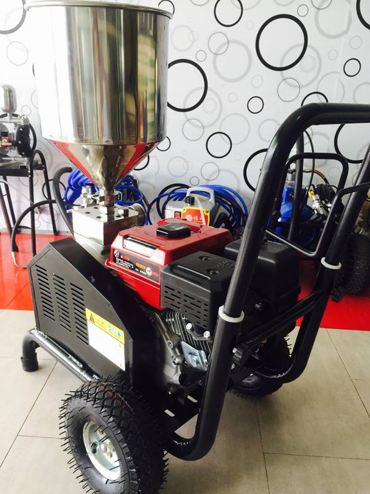 Đặc biệt máy phun bột trét GK-8600 sử dụng động cơ xăng, thích hợp cho vùng điện chập chờn, điện yếu hoặc không có điện.